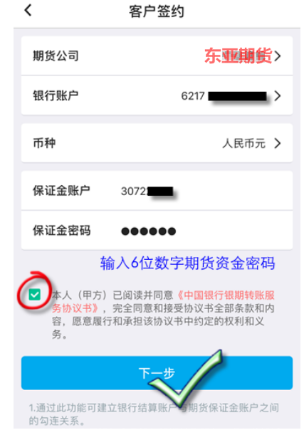 期貨賬戶辦理完成后,就需要辦理銀期轉賬的簽約,很多銀行都支持手機銀行或網銀辦理銀期轉賬簽約,部分銀行需在銀行柜臺辦理,具體情況可咨詢持卡行。