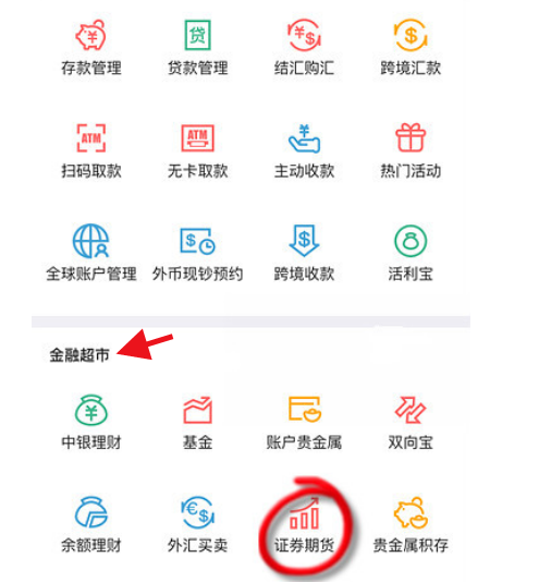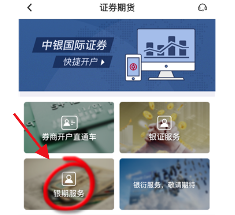 第三步:選擇“證券期貨”進入以下界面點擊“銀期服務”